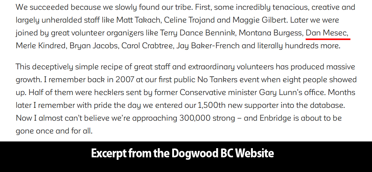 The peak of Dan Mesec’s career can be summed up with his meeting the terrorists who were involved with the massive destruction caused to Coastal Gaslink, that will further burden taxpayers due to it rightfully being written off as expenses when CGL does their taxes.