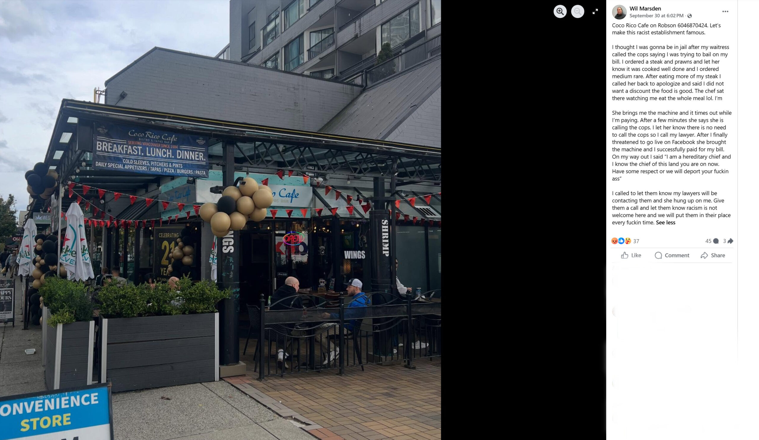 Wil Marsden looks like he wants attention again. We aim to please, let his own words be a judgment on where this man is at today. One would wonder why they get such rave reviews on Trip Advisor 4 out of 5 with 170 reviews, that should sort of indicate that there is more to the story than Wil is admitting to. It is a bar and bistro, I do wonder if alcohol was served that night? Read what he said, one must wonder how he gets away with that kind of language on Facebook. I do wonder if Coco Rico Cafe Bistro ever did get that call, or if they plan to sue him for his comments.