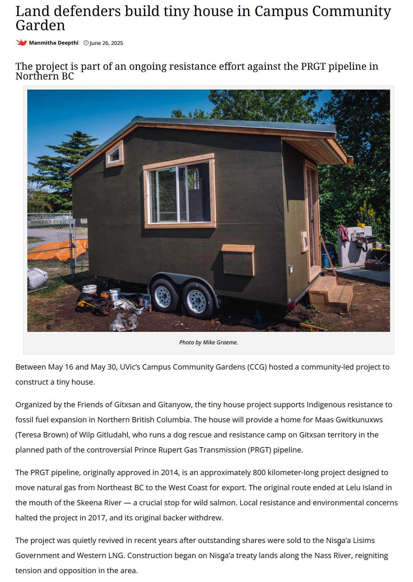 While only a small portion of the pipeline has been built so far, discussions about consultation and environmental impact continue, and efforts like those of Maas Gwitkunuxws’ camp — and the tiny home project — show that some people are taking concrete action.