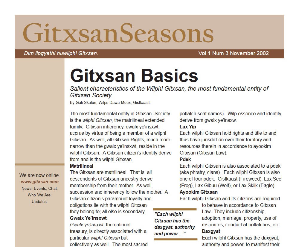 Keep in mind both Gitxsan and Wet’suwet’en nations hired  Antonia Mills as expert witness in the Delgamuukw v. British Columbia trial.