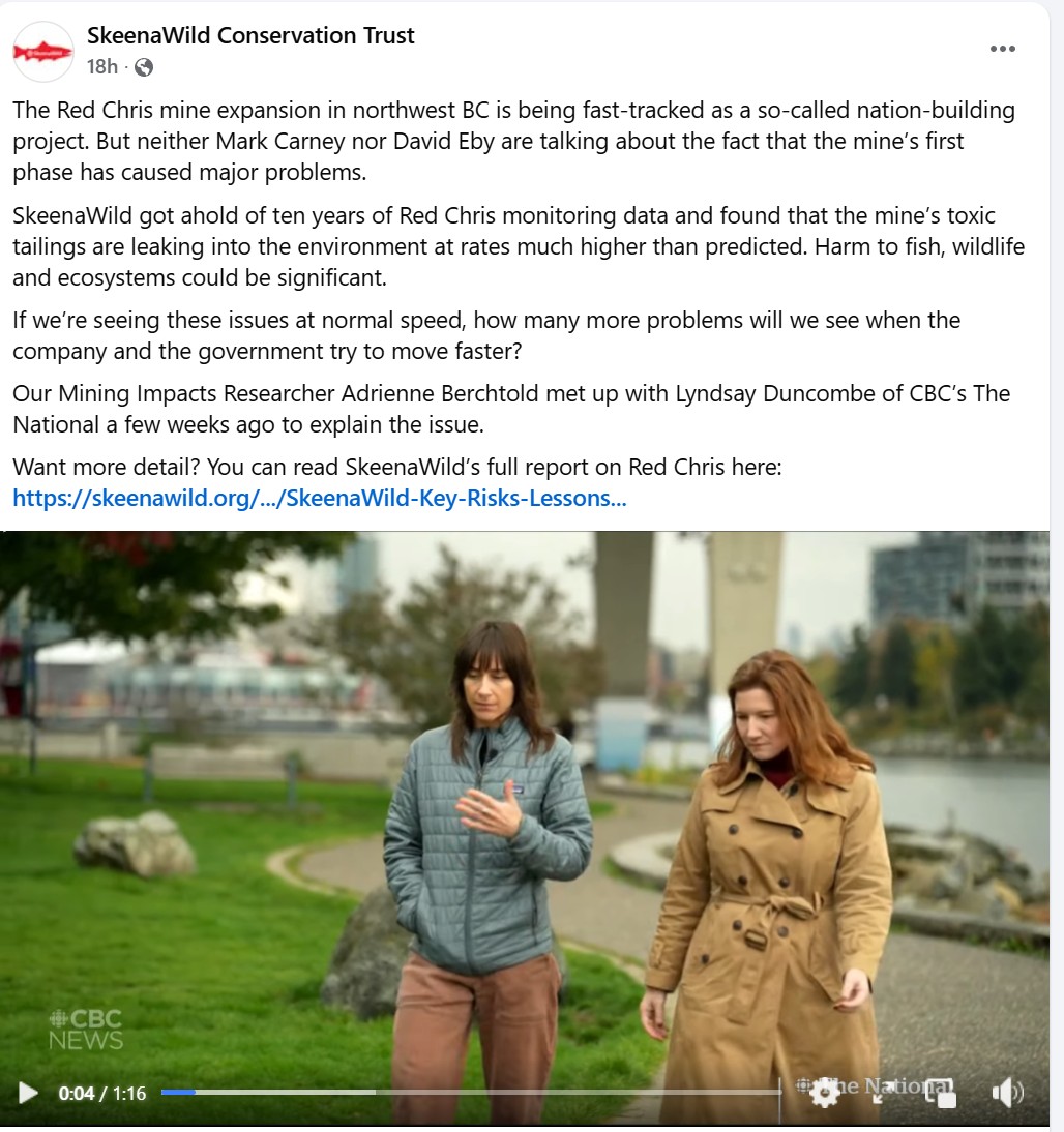 Now a breakdown. “There was a series of, I would say, oversights on the part of the government that have resulted in long standing environmental issues.” an accusation without any substantiating evidence. “All of Red Chris Mine’s waste leaks into the surrounding environment, into the creeks and lakes at rates that are much greater than what was predicted and planned” Fear tactics, if it leaks its obvious where it will leak, is there leaks? She provides no evidence that there are leaks. “In fact, the province of British Columbia has repeatedly fined the mine for instances of failing to monitor groundwater.” “The government should not be speeding up a process that they are already not getting right at regular speeds”. “If we’re seeing all of these issues arising at Red Chris under the current regulatory structure at a normal speed, then how many more problems are we going to see as they fast track?” I seriously doubt that she even has a clue what fast tracking involves, what we do know is she is paid to try to block, slowdown, or preferably kill all mining projects.
