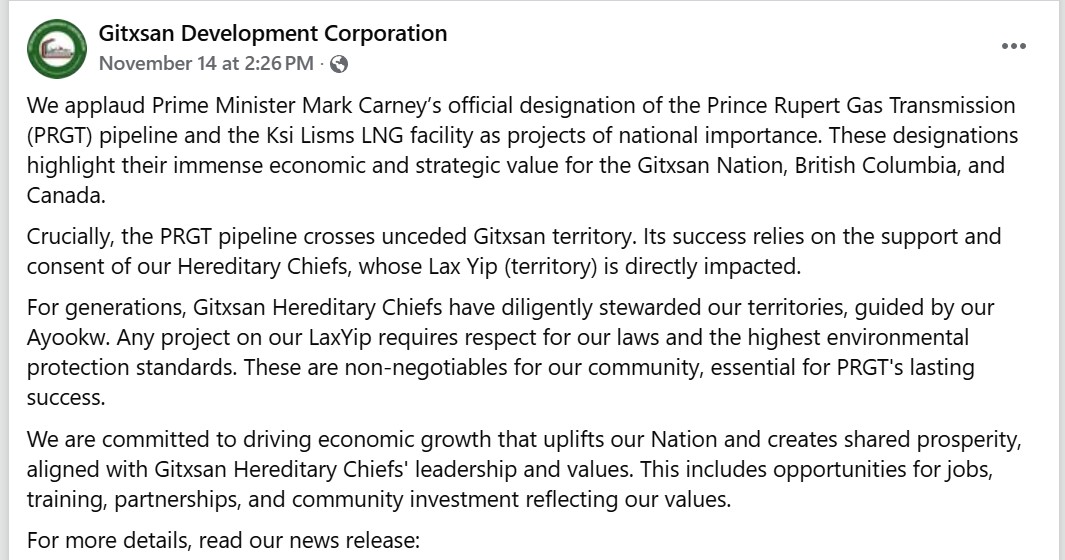Breaking News: The Majority of Gitxsan Hereditary Chiefs support Ksi Lisims LNG